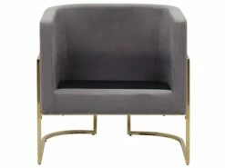 Ein Sessel von höchster Eleganz bei dem die Qualität der Materialien und deren Verarbeitung Sie auf jeden Fall überzeugen werden. Seine klare Form mit halbhoher Arm- und Rückenlehne vermittelt einen leichten, dennoch glamourösen Eindruck. Das goldfarbene Metallgestell ist ein kostbares Detail, das nicht nur optimale Stabilität verspricht, sondern auch den Samtstoff-Bezug in ein besonderes Licht rückt. Bereichern Sie Ihren Schminktisch oder Ihr Wohnzimmer um einen Sitzplatz, der vor Noblesse und Gemütlichkeit nur so strahlt.