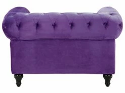 Klassische Formgebung trifft bei diesem zeitlosen Klassiker auf komfortable Gemütlichkeit. Der Sessel hat einen violetten Rundumbezug aus hochwertigem Samtstoff und verfügt über die charakteristische Knopfverzierung auf den wunderschön abgerundeten Rücken- und Armlehnen.