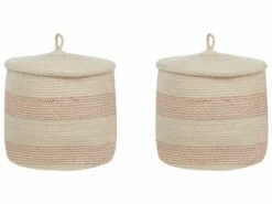 Die Körbchen passen perfekt in jedes Boho inspirierte Wohnambiente und bieten praktischen Stauraum. Man kann sie zum Verstauen von zusätzlichen Kissen oder Überwürfen verwenden, aber auch in Badezimmern als Wäschekörbe verwenden. Sie sind mit einem Deckel versehen, der in Stil und Farbe aufeinander abgestimmt ist. Das von Hand gefertigte Designzubehör besteht aus Baumwolle und ist daher langlebig und leicht zu reinigen.