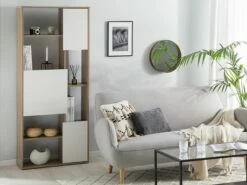 Verschönern Sie Ihr Wohnzimmer oder Ihr Heimbüro mit diesem modernen Highboard. Schränke bieten ausreichend Platz, um alles Notwendige zu organisieren. Außerdem sind die oberen Türen mit einem durchsichtigen Metallgitter verziert, das dem Möbelstück einen industriellen Touch verleiht und die Möglichkeit bietet, Ihre Lieblingsbücher oder -accessoires zu präsentieren. Das Sideboard hat eine vollendete Rückwand und eine Oberseite aus Brettern in Holzoptik, so dass Sie es nicht nur an der Wand, sondern auch an jedem anderen Platz Ihrer Wahl aufstellen können.