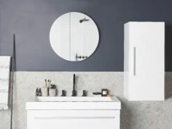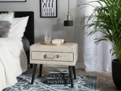 Dieser geräumige Schubladenschrank kann als praktische Aufbewahrungsmöglichkeit für Wohn-. Schlaf- oder Esszimmer gebraucht werden. Hinter den Schranktüren verbergen sich 4 Einlegeböden, so erhalten Sie genügend Platz für alles, was unsichtbar sowie griffbereit verstaut werden soll. Der gesamte Tischkörper ist aus robusten, langlebigen Faserplatten in einem mattem Finish gefertigt, während die Türen aus pflegeleichten MDF-Platten in einer glänzenden Ausführung gehalten sind. Das Möbelstück ist mit einem LED-Licht ausgestattet, das in verschiedenen Farben leuchtet, 4 Modi besitzt und über eine Fernbedienung gesteuert werden kann. Dank diesem Beistellschrank können Sie nicht nur all Ihren Krimskrams aufbewahren, sondern auch Ihre Räume in eine stimmungsvolle Atmosphäre tauchen.