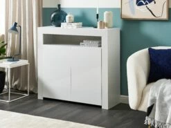 Moderner, halbhoher Wohnzimmerschrank mit viel Stauraum und praktischem LED-Licht