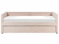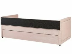 Klassisches Ausziehbett mit Cordbezug in Pastellrosa und 2 stabilen Lattenrosten