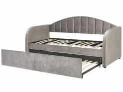 Dieses multifunktionale Bett ist das perfekte Möbelstück für jedes Kinder- oder Gästezimmer. Die Samtpolsterung in Grau und das moderne Design machen es zu einem zeitlosen Einrichtungsgegenstand. Dank der Rückenlehne kann das Bett als Sofa verwendet werden, und durch Ausziehen des unteren Teils erhält man ganz einfach eine zusätzliche Fläche zum Schlafen. Der robuste Rahmen, die beiden Lattenroste und die stabile Konstruktion garantieren Ihnen Qualität für eine lange Zeit.