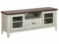 Viel Stauraum eingeschlossen in einem modernen Design! Stellen Sie ihren Flachbildschirm auf der breiten Tischplatte auf und benutzen Sie die zwei, großen Schränke um Ihre Weinflaschen oder Knabberzeug für den Fernsehabend stets in Reichweite zu haben. Zudem, können die Flügeltüren jeglichen Krimskrams sowie Spielekonsolen oder andere Geräte außerhalb des Blickfeldes halten. Durch seine kompakte Konstruktion kann das TV-Möbel auch als Kommode im Schlafzimmer oder Ablagefläche im Flur dienen.
