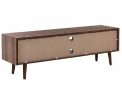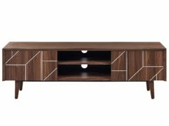 Das Lowboard aus robuster, pflegeleichter Spanplatte mit stabilen Holzbeinen zeichnet sich durch seinen modernen Look aus. Die zwei mittigen offenen Fächer verfügen über nützliche Löcher an der Rückwand, so dass Sie alle Kabel von Spielekonsolen, Receiver oder anderen Geräten leicht verstecken können. Zwei praktische Schranktüren mit modernem Muster lassen ebenso jeden Krimskrams verschwinden.