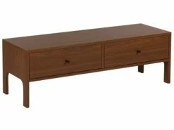 Das präsentierte TV-Möbel ist ein attraktiver Hingucker in Ihrem Zuhause! Die zeitlose Form und die Farbe in dunklem Holzfarbton harmonieren mit jedem eleganten Wohnstil und dank der zwei geräumigen Schubladen sorgt das Möbelstück für viel Stauraum. Dieses Lowboard verbindet Eleganz mit Funktionalität und überzeugt zudem durch eine hochwertige Qualität.