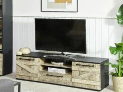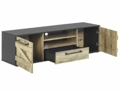 Ein Möbelstück, das sich sowohl als Lowboard wie auch TV-Möbel beweist! Die dezenten Fronten in heller Holzoptik kontrastieren hübsch mit den Seiten in Schwarz und verleihen der Kommode eine moderne Optik mit Landhaus-Charme. Die perfekt zum Design abgestimmten Griffe aus Metall runden das Gesamtbild gekonnt ab. Hinter den 2 Schranktürchen können problemlos allerlei Alltagsgegenstände verstaut werden und in der mittleren Schublade ist genug Platz für Kabel oder TV-Zubehör.