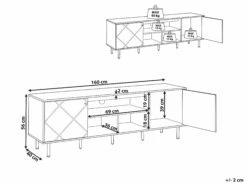Skandinavischer Stil mit einem modernem, glamourösem Touch – dieser TV-Schrank unterstreicht jede moderne Einrichtung. Er ist aus robusten Materialien gefertigt und mit einem dekorativen Muster auf der Vorderseite versehen. Der Fernsehschrank hat zwei verdeckte Fächer mit weißen Türen und drei Einlegeböden. Er bietet somit genügend Platz für Dokumente, Zeitschriften oder Mediengeräte und fügt sich perfekt in jedes Wohn- oder Schlafzimmer ein.