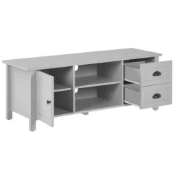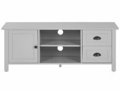 Ein klassischer Fernsehschrank ist ein praktisches Möbelstück in jedem Wohnzimmer. Der großzügige Stauraum wird es Ihnen ermöglichen, Ihr TV-Zubehör und andere wichtige Dinge geordnet aufzubewahren. Außerdem wird die spezielle Kabeldurchführung Ihnen dabei helfen, Ihre Kabel ordentlich und entwirrt zu halten. Das Möbelstück ist aus einer robusten, beschichteten Spanplatte gefertigt, die eine lange Lebensdauer garantiert und gleichzeitig einfach zu pflegen ist.