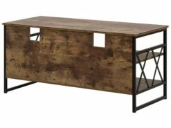Ein Fernsehtisch sollte nicht nur funktional und praktisch sein, er darf auch gerne richtig schön aussehen! Auf der oberen Tischplatte dieses TV-Möbels findet auch der grösste Flachbildfernseher Platz, und die vier praktischen, offenen Fächer bieten zusätzlichen Stauraum für Zeitschriften, Bücher, DVDs und Fernbedienungen. Der Farb- und Materialmix aus robuster Melaminbeschichtung in brauner Holzoptik und dem stabilen Gestell aus pulverbeschichtetem Metall in Schwarz unterstreicht die ausdrucksstarke und industrielle Ausstrahlung.
