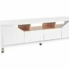 Durch seine lange, dennoch niedrige Bauweise bringt dieses Lowboard jeden Fernseher in eine angenehme Blickhöhe. Falls Ihr TV-Gerät an der Wand montiert ist, können Sie es als praktischen Unterschrank nutzen und sich all seine Aufbewahrungsmöglichkeiten zu nutze machen. An der Rückwand befindet sich eine Kabeldurchführung für Ihre Heimelektronik und die geräumigen Schränke helfen Ihnen bei der Organisation Ihres Wohnraums.