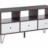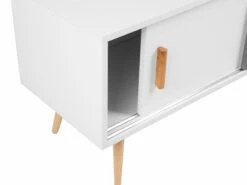 Das Lowboard begeistert mit seinem interessanten Farbkontrast aus Weiß, Grau und Buchenholz. Es ist durch drei gleich große Schiebetüren unterteilt, welche durch die hochwertig verarbeiteten Holzgriffe leicht zu öffnen sind. Design, Qualität und Farbwahl werden zu überzeugenden Kaufargumenten. Dieses TV Möbel bringt Pepp in Ihre Einrichtung!