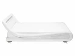 Dieses Wasserbett liegt absolut im Trend und begeistert durch seine ausgefallene, elegante, geschwungene Formgebung und das exklusive Design. Als besonderes Highlight ist eine praktische und stilvolle LED Lichtleiste im Kopfteil integriert, welche über 7 verschiedene Farben verfügt und per Fernbedienung für vier Programme (schnelles, langsames oder sanftes Licht, stand by) eingeschaltet werden kann. Der pflegeleichte, strapazierfähige Bezug ist aus hochwertigem, weißem Kunstleder gefertigt, die Rückseite des Kopfteils ist aus Vliesstoff.