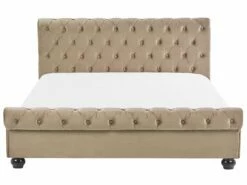 Stilvolles Wasserbett aus Samtstoff in außergewöhnlichem Beige im Chesterfield Style