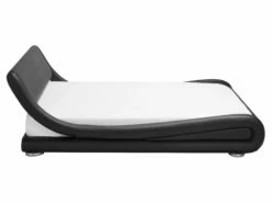 Dieses Wasserbett liegt absolut im Trend und begeistert durch seine ausgefallene, elegante, geschwungene Formgebung und das exklusive Design. Das komfortabel gepolsterte, hohe Kopfteil unterstreicht die luxuriöse Ausstrahlung. Der pflegeleichte, strapazierfähige Bezug ist aus hochwertigem, schwarzem Kunstleder gefertigt, die Rückseite des Kopfteils ist aus Vliesstoff.